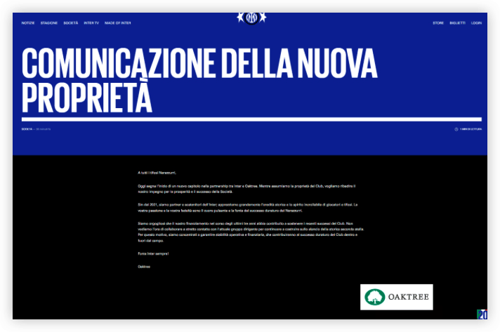 皇冠体育官网_米兰体育报道国米官网刊登橡树资本公开信:致力确保运营和财务稳定性继续成功